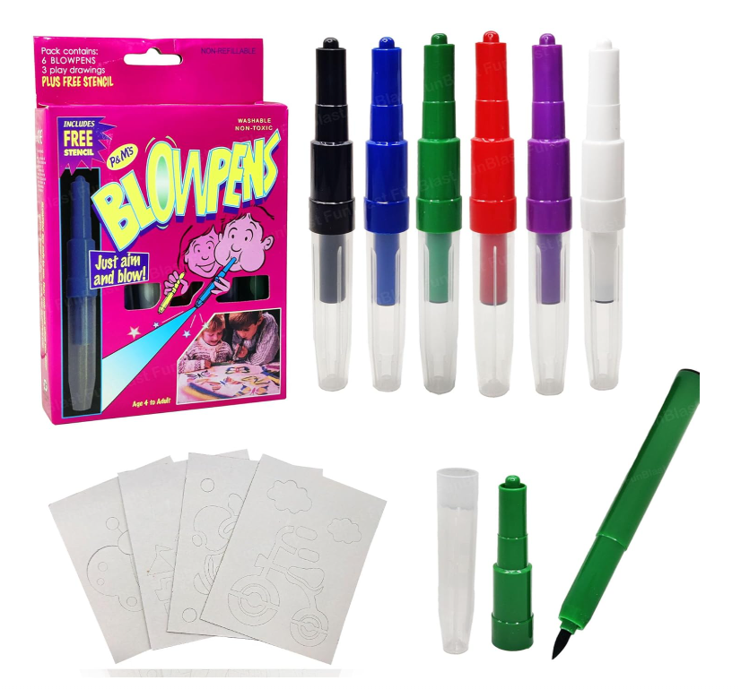 Blow Pens – Magical Coloring Spray Blow Pens for Kids Children, Pack of 6 Pcs Spray Blow Marker Sketch Pen for Kids, Fun Drawing Arts Crafts Colour Pens for Return Gifts, Multicolor