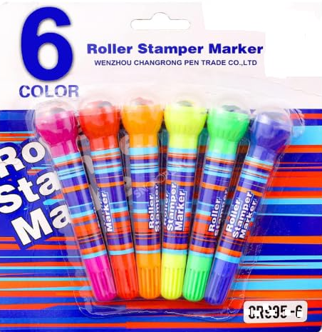 Stamp for Kids – 2 in 1 Roller Stamper Marker Pen Stationery, Birthday Return Gifts (6), Ink Multicolor