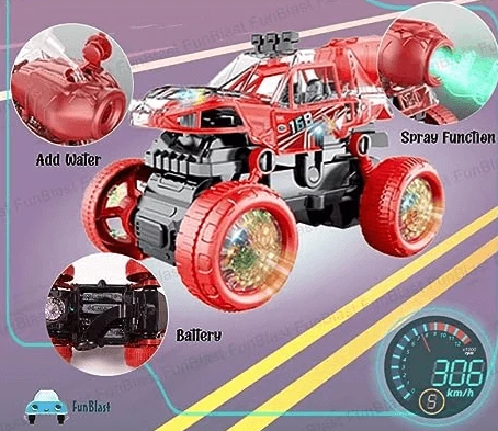 Xuanna Stunt Spray Car with 3D Flashing Light & Sound Toy for Kids Friction Power Toy Car for Kids – 360 Degree Stunt Car