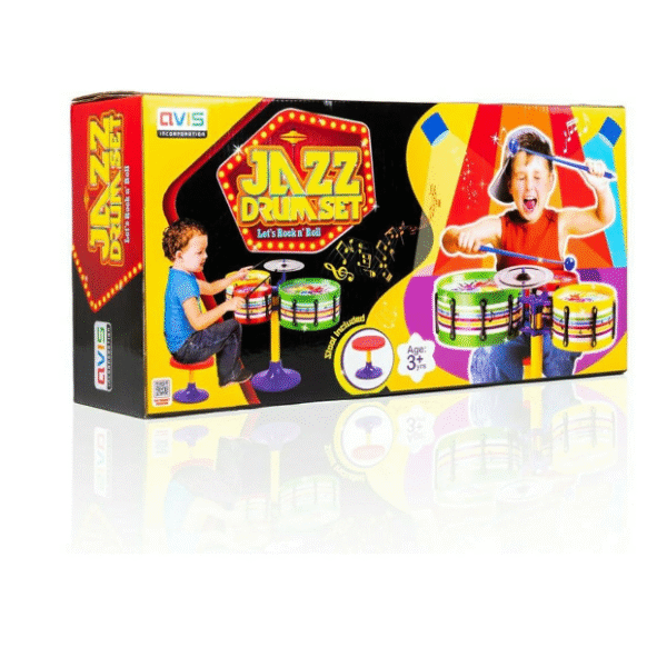 Jazz Drum Set Senior Musical Band Instruments with 3 Drums, 1 Dish, 1 Stool & Sticks for Kids (Assorted Colors & Designs)