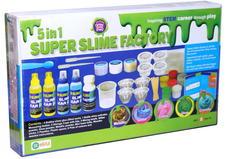 Ekta 5 in 1 Super Slime Factory| Multi Color |Safe and Non Toxic| DIY Slime Factory Kit |Make Your Own Fantastic Yucky Slime at Home |Age Above 8 Years.