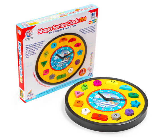 Ratna’s Shape Sorter Clock 2in1 Educational Clock Learning Toy Along with Shapes, Numbers & Colors Teaching Time Montessori Toys for Toddlers & Kids 3+ Years (Assorted Colours)